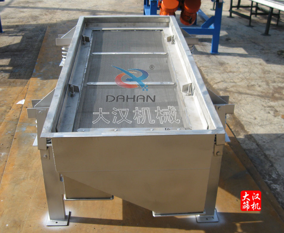 “大漢牌”DZSF-512-1S食品直線振動篩篩面寬為50mm,長1200mm,一層篩網(wǎng)二出口,與物料接觸部材質(zhì)以及直線篩篩網(wǎng)均為304不銹鋼,內(nèi)部打磨拋光,干凈衛(wèi)生,支架以及電機板、導力板為Q235碳鋼材質(zhì),噴防銹漆。